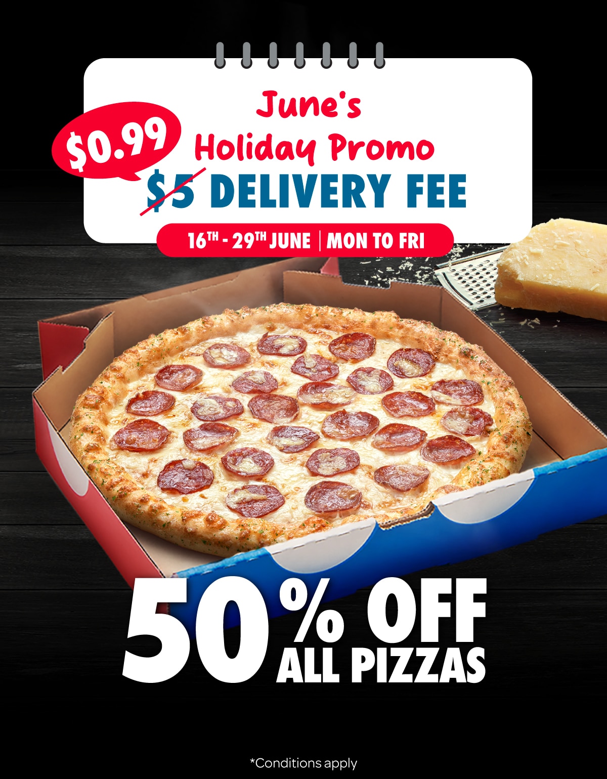 It is our commitment to be the best pizza joint in Singapore and offer great value for all pizza lovers from around the world. Domino's Pizza has won the hearts of many with a variety of great tasting signature pizzas delivered quickly to your door step while maintaining the freshness and its state of piping hotness, for a hearty meal with family and friends. Domino's Pizza has been established in Singapore since 2009. In a span of 14 years, we have opened over 40 outlets across the island. From the first store at Bukit Timah in 2009, Domino's Pizza Singapore has grown strength to strength in providing great value through delicious pizzas delivered fast. Throughout time, Domino's has also been upgrading its menu and food choices by offering limited time flavors and variety such as Mentaiko Pizza, Chocolate Lava Cake, and Cheeseburger Pizzas.